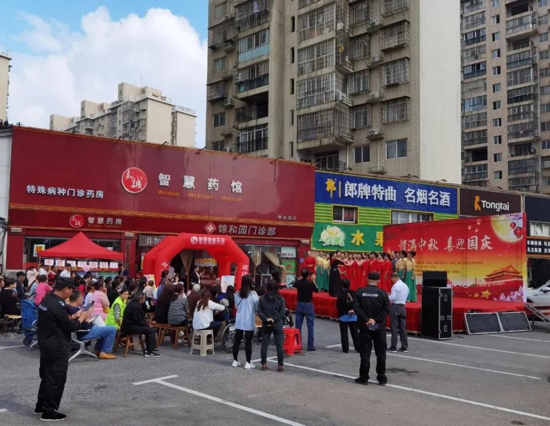 新诚智慧医药馆锦和园门店负责人介绍,一直以来,锦和园门店每年都会举办双节文化演出活动和门店优惠活动。活动不仅弘扬了中华民族的传统文化,营造了热烈喜庆、文明祥和的节日氛围,而且进一步增进了药房门诊与居民之间的交流沟通,为社区居民共同献上国庆中秋文化大餐,提升了居民的归属感、获得感、幸福感。