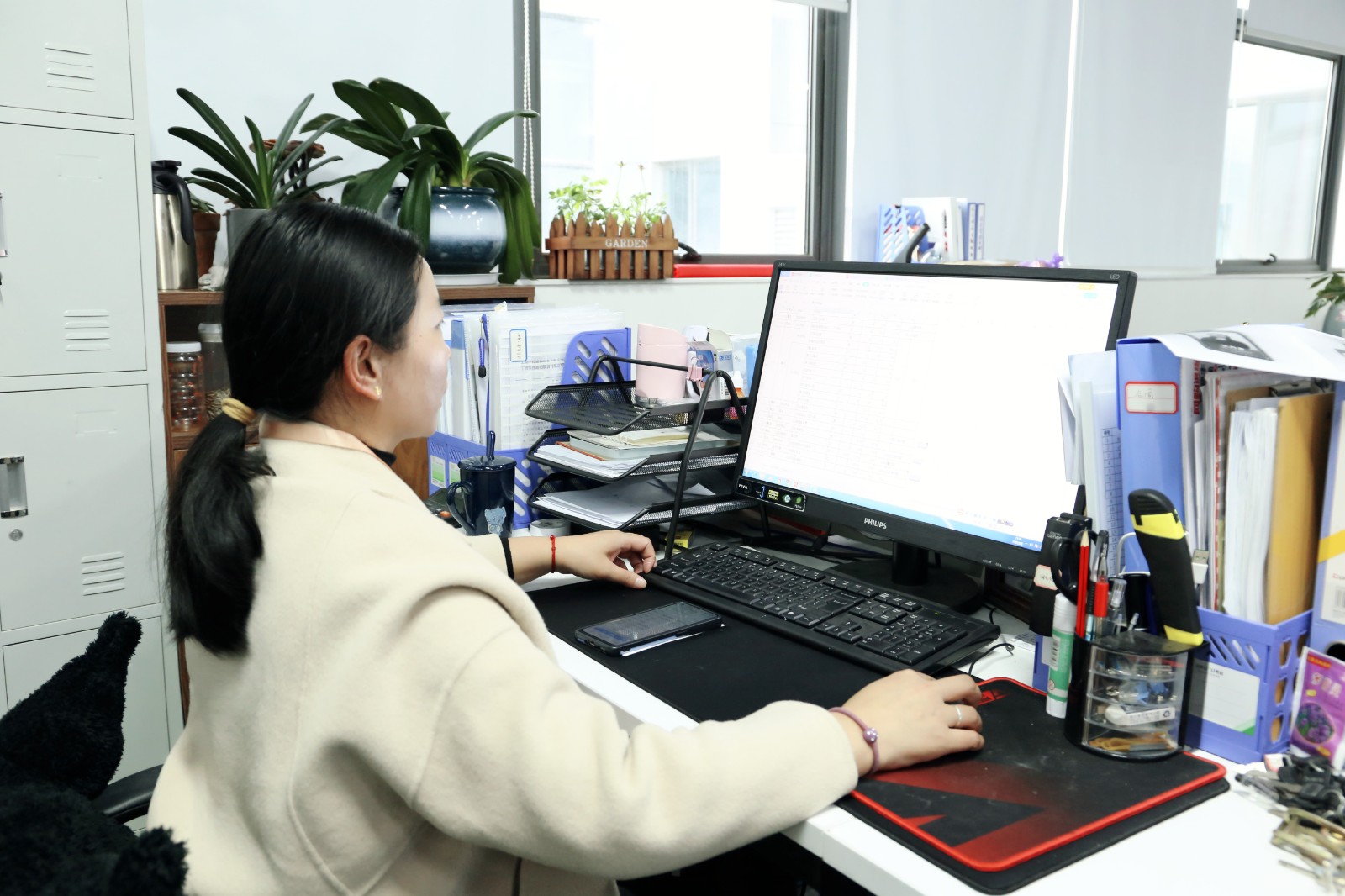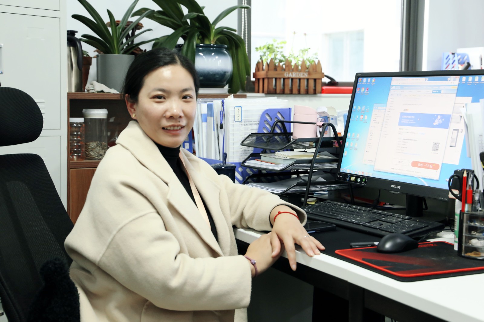 要知道,行政人的日常,必定是事事有回应,件件有着落。对内要协调人员物资,对外要管理供应商渠道。大到公司的选址装修、安防掌控;小到员工的生日、鲜花绿植、水道堵了、天花板漏水、打印机坏了、办公室饮用水用完了……林林总总的事务,没有一件不需要精力。王丹青的工作理念即是爱企如家的最好实践,她总是满怀激情与耐心,面带微笑归类轻重缓急一件一件处理,“公司的后勤工作就像是我在个人小家庭里居家主管的升级,只是规则制度更加明确严谨,我把两者的经验融合变通,眼里有活,踏踏实实应对好每一处需求,心态自然是好的,开心工作、幸福生活。”